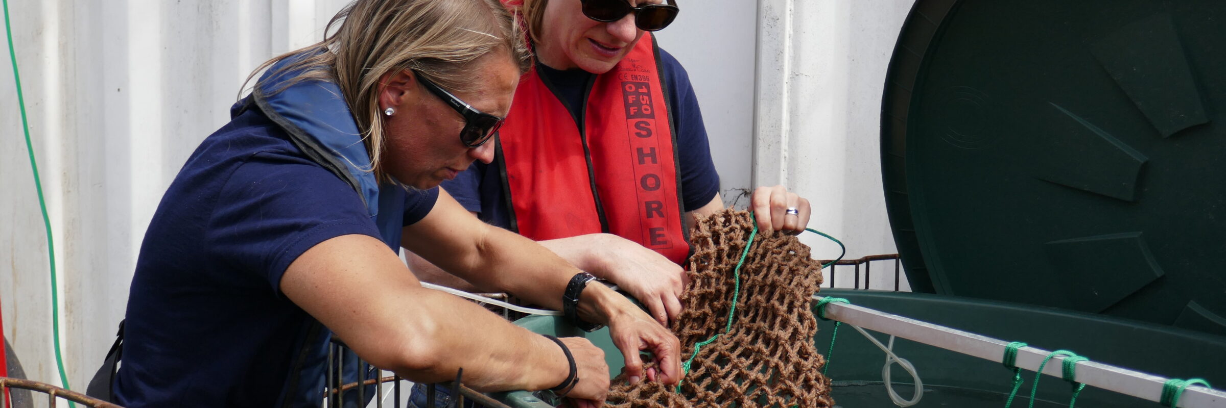 An diesem Tag ist Grundsteinlegung. Beladen mit ungewohnt fragiler Fracht, schaukelt die „Multrasalvor 4“ etwa 30 Meter über dem Meeresboden, unweit von Borkum. Der Horizont ist wolkenverhangen, die Sicht an diesem Morgen diesig. Regenschauer prasseln gegen die Fenster der Brücke. Gebannt verfolgen die Meeresbiologinnen Bernadette Pogoda und Tanja Hausen das Geschehen an Deck, stehen in permanenter Abstimmung mit dem Kapitän, dem Ersten Offizier, der internationalen Crew.