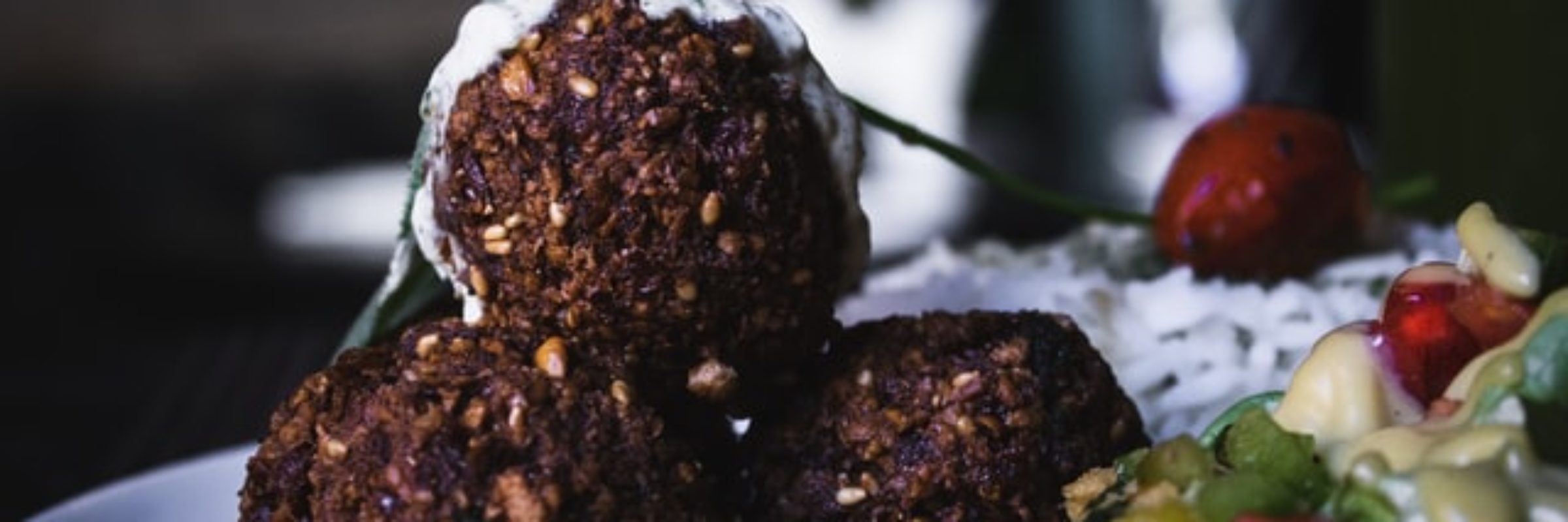 haben Linsensuppe und „Kabse“ bestellt, ein syrisches Festtagsgericht mit Hähnchen, Gemüse und gelbem Tomatenreis, dekoriert mit Cashewnüssen und Mandeln. Der Augenschmaus passt farblich sogar zu den ockerfarbenen Wänden, zu den kugelrunden Bocci-Leuchten, die in einem feinen Geflecht bunt von der hohen Decke baumeln und zu den eleganten Blumenampeln, die sanft im Erker schaukeln.
